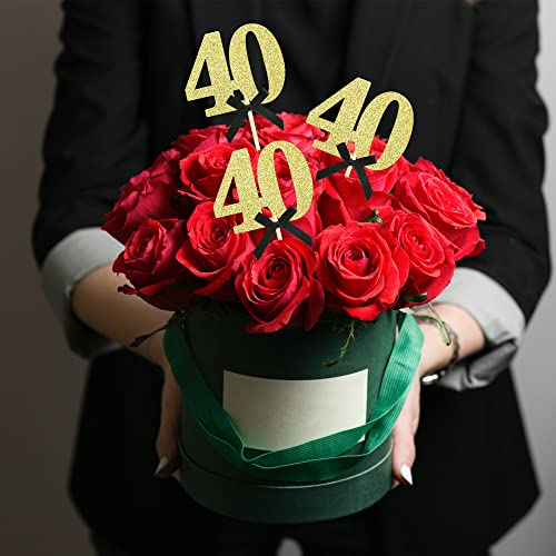 Sotpot 8 pezzi oro Glitter 40° compleanno Centrotavola Bastoni Centrotavola, Numero 40 con Fiocco Centrotavola Tabella Fiore Topper per Uomo Donna 40° Compleanno Anniversario Decorazioni Da Tavola