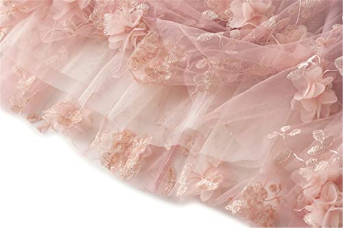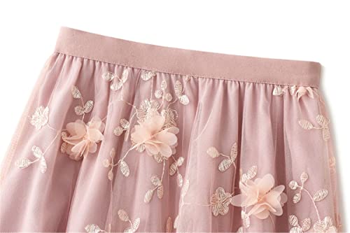 SotRong - Gonna pieghettata in tulle a strati da donna, gonna elastica a vita alta, a trapezio, gonna midi in chiffon a rete con decorazione floreale, B-rosa, Taglia unica