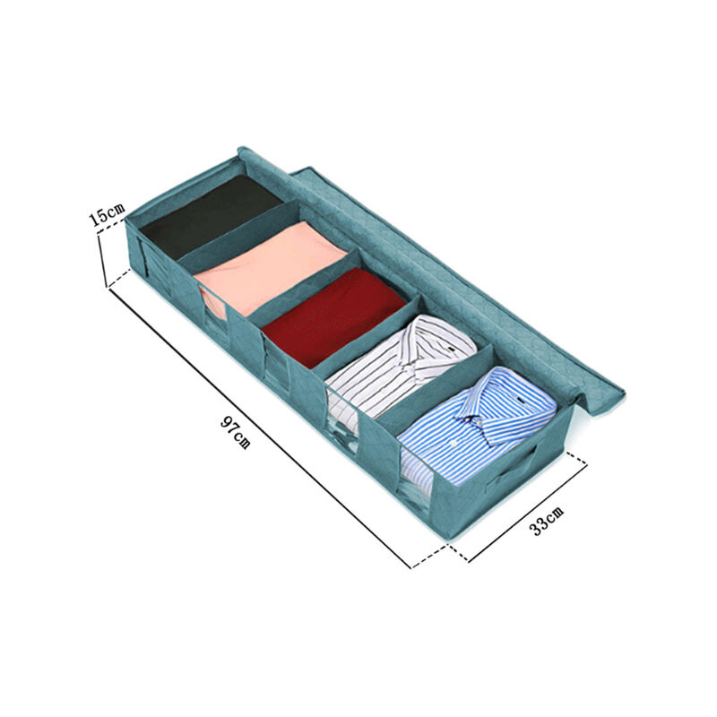 Caratteristiche:Materiale durevoleBorsa portaoggetti sotto il letto realizzata in tessuto non tessuto resistente con diverse viste della finestra trasparenti e maniglie per il trasporto per un facile accesso. La funzione antipolvere lo rende anche molto utile per piccoli oggetti, come l'abbigliamento.Design pieghevoleLa conservazione sotto il letto è pieghevole e comprimibile per riporre ovunque quando non è in uso, risparmiando spazio.5 sezioniBorsa portaoggetti sotto il letto costruita con 5 sezioni con finestre trasparenti nella parte anteriore per una visualizzazione rapida di ciò che viene conservato all'interno del contenitore.AntipolvereLa chiusura con cerniera è buona per prevenire il tuo indumento all'interno da polvere, sporco, parassiti, umidità.PortatileQuesta borsa è facile da impilare o trasportare da un luogo a un luogo con le maniglie del trasporto. Essere ottimo per l'uso in viaggio.ApplicazioniL'organizzatore della borsa portaoggetti rende le dimensioni perfette per
