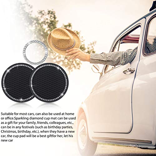 2 Sottobicchiere Auto Antiscivolo in Silicone Bling Inserisci Sottobicchiere Accessori Sottobicchiere Auto Strass di Cristallo e Anello di Accensione Auto Ignizione Motore (Nero)