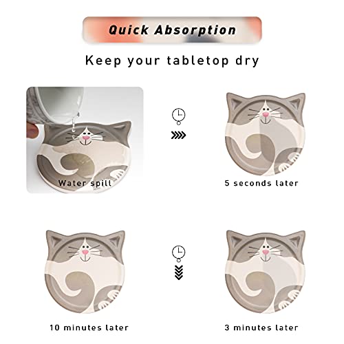 【Facile da pulire】Il design classico e innovativo a forma di gatto, i colori freschi e il design unico rendono il tappetino assorbente per gatti più vivace. Questi sottobicchieri per bevande a forma di gattino sono facili da pulire, basta sciacquare e asciugare naturalmente.
