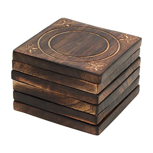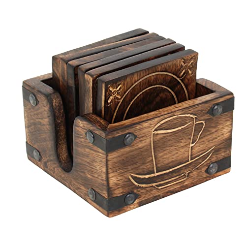 Sottobicchieri fatti a mano in legno scuro con supporto contenitore, 6 pezzi