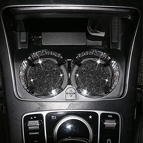 LEEQ 2 sottobicchieri portabicchieri per auto + 2 pezzi pulsante di arresto di avvio anello Bling strass di cristallo accessori per la decorazione dell'auto (nero)