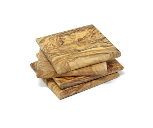 Sottobicchieri quadrati in legno d'ulivo, set da 4 pezzi, 8,5 x 8,5 cm, per tazze e tazze