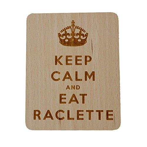 8 sottobicchieri per raclette con incisione laser "Keep Calm and Eat Raclette" in legno di faggio, 100 x 80 x 7 mm