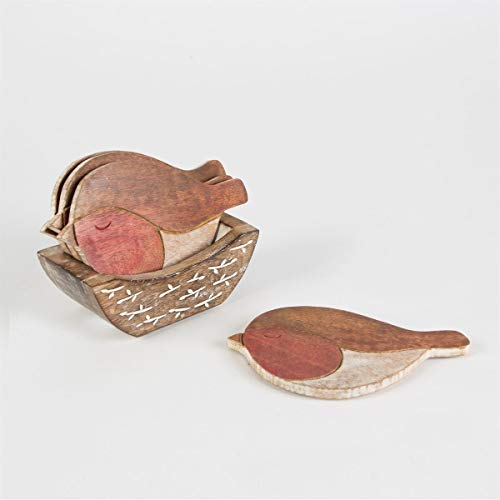 Ogni sottobicchiere è realizzato in legno di mango e è un incantevole Natale Pettirosso
