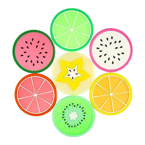 Lista di imballaggio: riceverai 7 sottobicchieri con design di frutta, sufficienti per il tuo uso quotidiano.