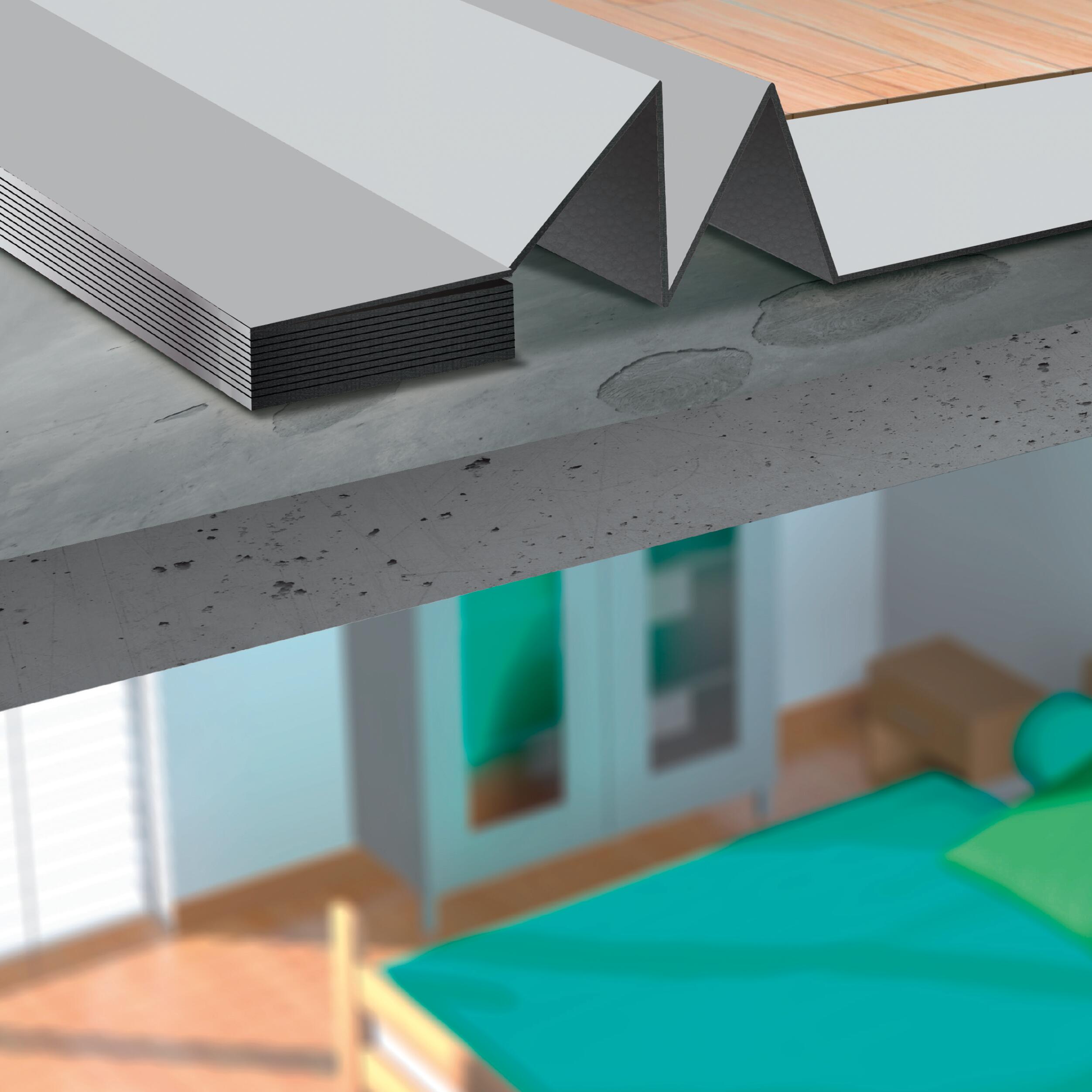 In polistirene con alto livello di resistenza termica. Ideale per ridurre i rumori all'interno e all'esterno della stanza. Adatto a compensare dislivelli del sottofondo fino a 2mm. Migliora isolamento acustico nella stanza. Grazie alla forma e alle linee disegnate sulla superficie è facile da tagliare