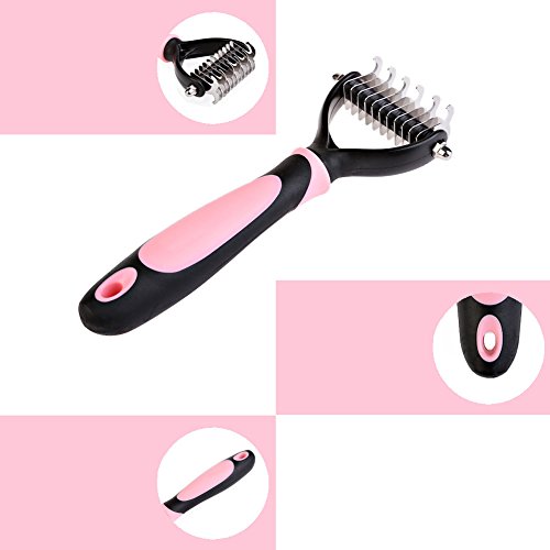 Pet sottopelo Rake, saplit Strumenti Dematting professionali, Preparando Spogliarello pettine per Cani Gatti, 11 denti larga Animali Brush (Rosa)