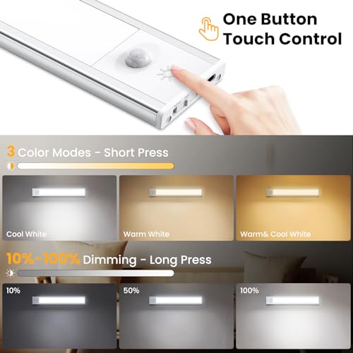 LED Sottopensile Cucina, [2 pezzi] Luce Armadio LED con Sensore di Movimento, 84 LED Armadio Luce Notturna Ricaricabile Magnetica, 3 Modalità e Dimmerazione, Luce LED Sottopensile per Cucina, Scale