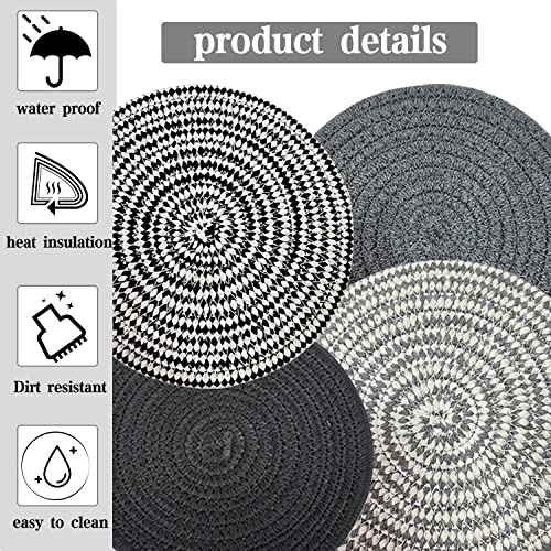 Sottopentola in Cotone a Filo,RONGYI 4 Pezzi Tovagliette Rotonde Cotone Multiuso, Antiscivolo Rotondo in Filo Intrecciato in Cotone Sottopentola per Cucina, Soggiorno, Sala da Pranzo (4 Colori)