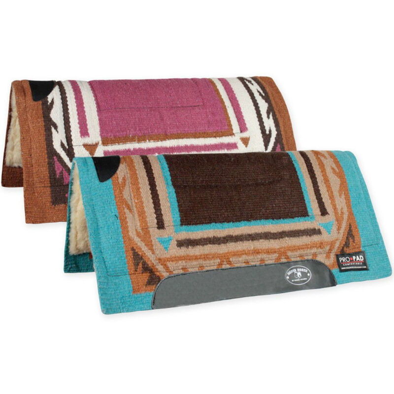 Sottosella americano Sottosella Western realizzato in tessuto navajo multicolor con parte sottostante in lanetta. Con imbottitura, è di qualità ed è rinforzato in pelle. Marca: Silver Horse / Starr Misure aperto: 32 x 34 pollici (pari a 81 x 87 cm circa) Colori: marrone/nocciola, rosa/viola