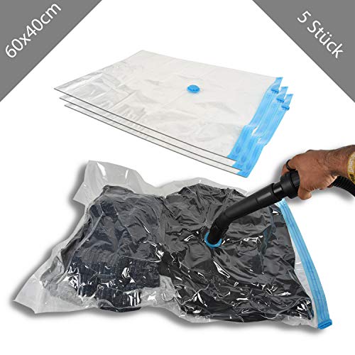 5 X HSM sottovuoto per indumenti biancheria da letto soffitto compressione Borsa di stoccaggio sacchetto 40 x 60 cm appendiabiti