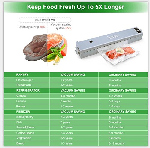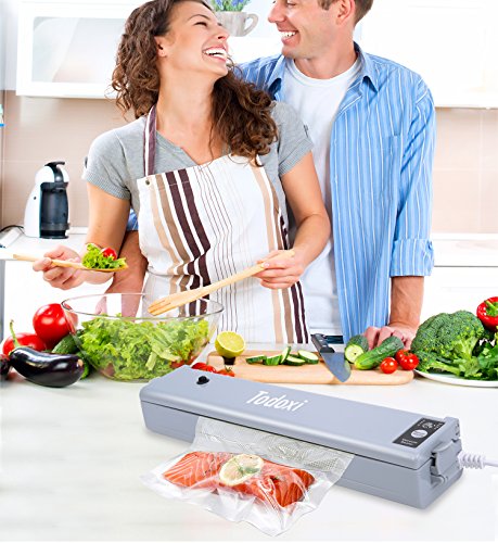 Sottovuoto Macchina, Todoxi Sigillatore Sottovuoto Portatile per Cibo Design Compatto Sistema di Tenuta all'Aria, 15 Sacchetti Sottovuoto Alimenti per Conservazione di Carne, Verdure, Frutta, Pesce