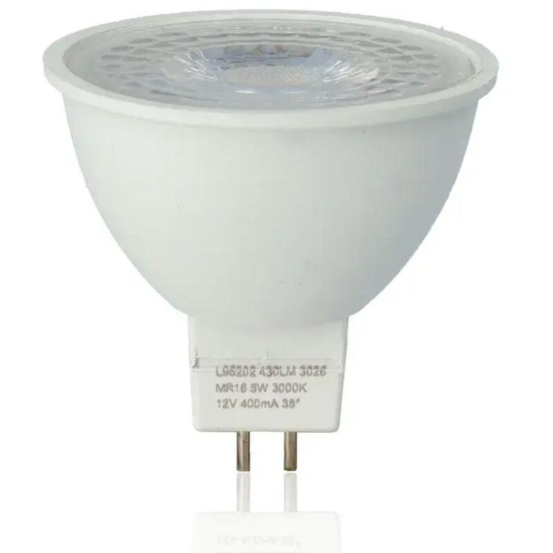 ha una temperatura di colore pari a 3000K, cioè luce calda ed un flusso luminoso di 430 Lumen . Questa lampadina LED ha l'attacco MR16, l'indice di protezione IP20, un indice di resistenza agli urti IK02, una durata di 30000 ore, un'angolazione del fascio luminoso di 38° ed una garanzia di 3 anni. Tutte le lampadine della gamma sono di colore bianco e sono composte da policarbonato e alluminio . L'impiego di questa lampadina LED è da interno, può essere utilizzata in un ufficio, in soggiorno, in una camera da letto, in un corridoio, in un negozio... si adatta a tutti gli ambienti, le lampadine con questo tipo di attacco si usano soprattutto nelle lampade da scrivania, ma si possono trovare anche dei faretti che hanno questo tipo di attacco. Lo stile di questa gamma di lampadine è sobrio e si abbina facilmente a tutti gli stili