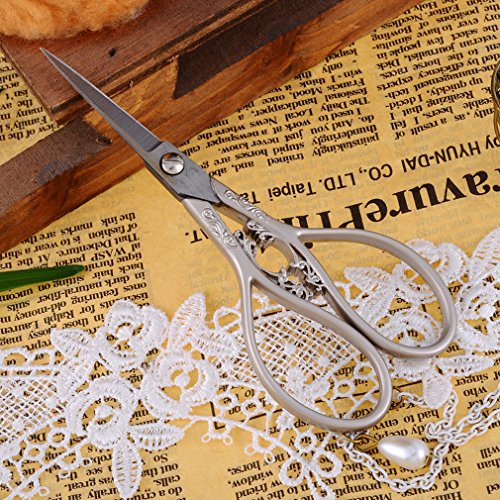 Souarts, forbici vintage in stile europeo, di precisione, in acciaio inossidabile, adatte per ricami, cucito artigianale, arte e altri lavori, per uso quotidiano silver grey