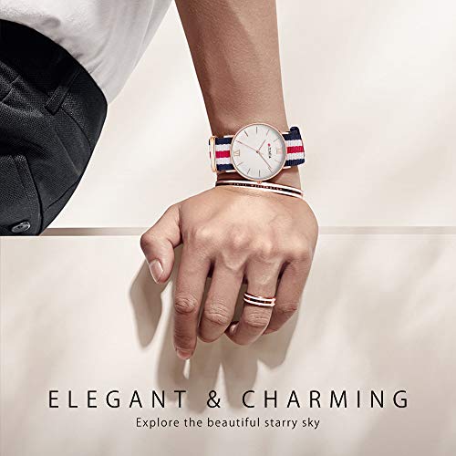 Souarts, Orologio analogico da polso da donna in stile semplice, orologio al quarzo con batterie, blu