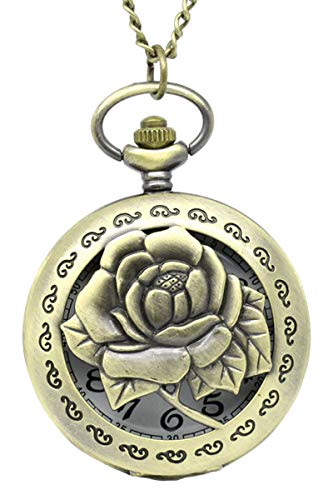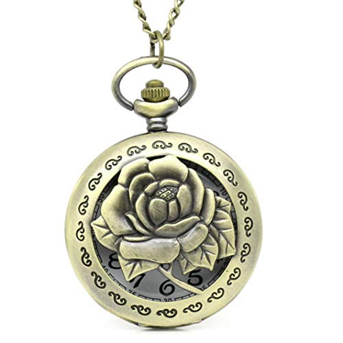 Souarts orologio da taschino colore bronzo antico con incisione di rosa.