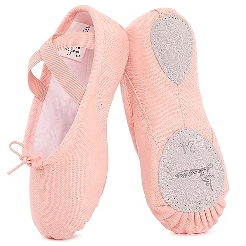 Soudittur Scarpe Danza Classica Tela Scarpette Ballo Mezze Punte Scarpe da Ballerina Ginnastica Ballo Pantofole per Bambina Ragazze Donna Rosa, EU 30