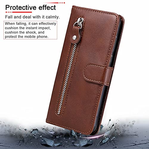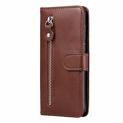 SOUFU Coque Folio Cuir Étui pour Samsung Galaxy S21 Fe,Portefeuille Housse vec,PU/TPU Bumper Protection Cover tand Fonction Fermeture éclair-Marron