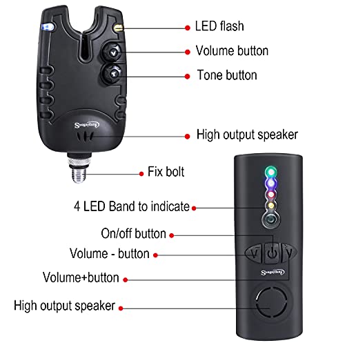 Buona portata di ricezione: l'allarme per morso di carpa wireless di Sougayilang ha una portata di ricezione di oltre 120 m (a seconda dell'ambiente). In breve, è facile controllare le funzioni dell'avvisatore acustico tramite ricevitore, come Volume, Tono, Sensibilità mentre Ito resta nel comfort del tuo santuario.