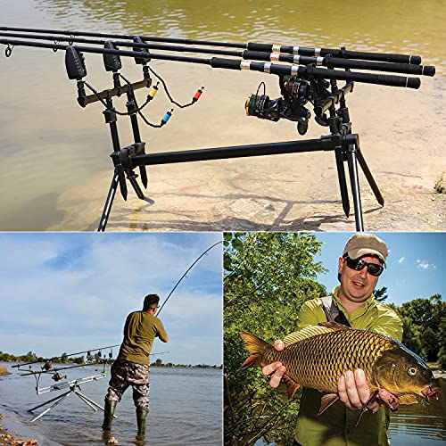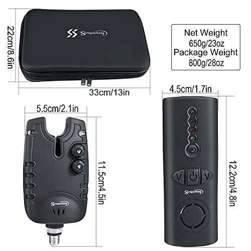 Sougayilang Set di allarmi per morsi da pesca alla carpa, 4 + 1 allarmi per morsi da pesca a LED wireless con scatola portatile con cerniera per diversi tipi di canna