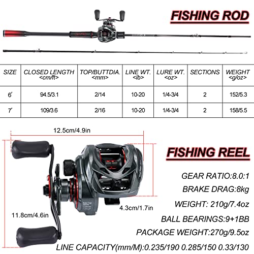Combinazione di pesca progettata ergonomicamente e può adattarsi facilmente al palmo della mano, dandoti il controllo desiderato. Essendo leggero, è facile da manovrare. Il mulinello baitcasting utilizza la più recente tecnica di ingranaggio, un cuscinetto anti-inversione istantaneo e rapporto di trasmissione 8.0:1. E utilizza parti di alta qualità che garantiscono un'esperienza di pesca fluida e costante. Quindi la combinazione di pesca fornisce l'equilibrio perfetto che ogni professionista desidera in un baitcaster.
