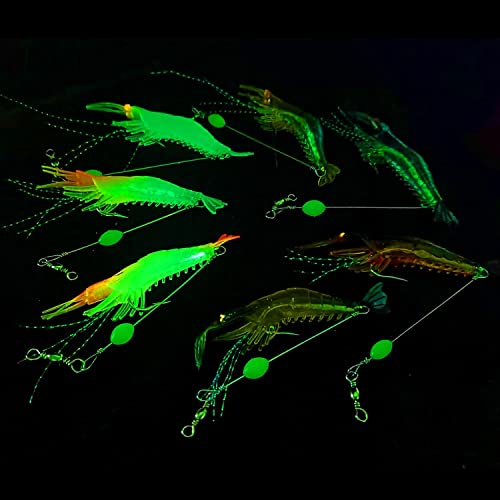 Luminoso - L'esca trasparente ha un migliore effetto luminoso: il corpo, la coda e il fagiolo brilleranno. Il gambero giallo e il gambero marrone hanno una capacità luminosa leggermente più debole, ma anche i loro fagioli sono luminosi. Suggerimenti: se vuoi che brillino meglio, puoi metterli al sole.