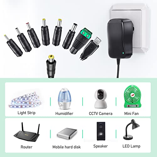 ✅ Fuente de alimentación todo en uno: esta fuente de alimentación de 36 W está equipada con 8 enchufes intercambiables, lo que la hace adecuada para el 95 % de los electrodomésticos de CA/CC, como dispositivos electrónicos de 3 V a 12 V, tabletas, básculas, enrutadores, altavoces, 12 V Tiras LED DC -Luces, Cámara de Seguridad CCTV, DVR-NVR, Disco Duro Externo, Gatos ADSL, HUB USB y más.