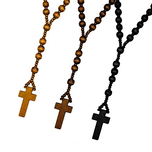 SoulCats Perline di Legno Rosario in Tre Diversi Colori Nero Marrone Croce di Legno, Colore: Marrone