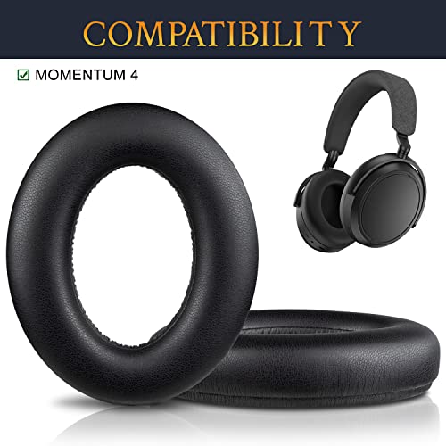 SOULWIT Cuscini di Ricambio in Pelle di Proteina per Sennheiser Momentum 4 Cuffie Wireless Over/Around Ear, Padiglioni Auricolari con Schiuma di Isolamento Acustico ad Alta Densità-Nero