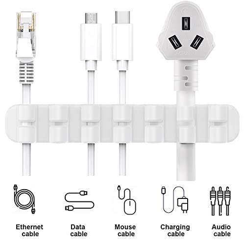 SOULWIT 3 Pezzi Supporto per Cavi Aggiornato, Organizer a Clip per Cavo, Silicone Autoadesivo Gestione del Cavo, per Cavo di USB Cavo di alimentazione Cavo da comodino PC Ufficio Casa(Bianco)