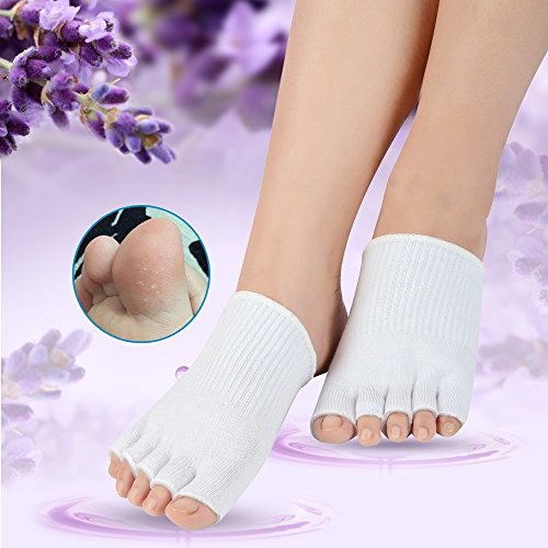 Soumit Idratante Sbiancamento Gel Calzini, Traspirante Elastico Separata Punta Calze, Invisibili Protettivo Metà Cotone Calzino per Ammorbidire Il Tuo Piedi Profondamente Idrato Pelle