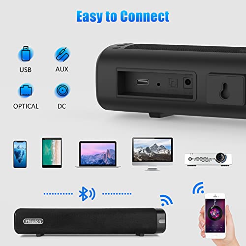 Soundbar per PC, Altoparlante TV, Phission Barra del Suono, Bluetooth 5.0, Telecomando, Tecnologia 3D Bass Surround DSP, Supporta USB/Ottico/AUX, Wireless Portatili Sistema