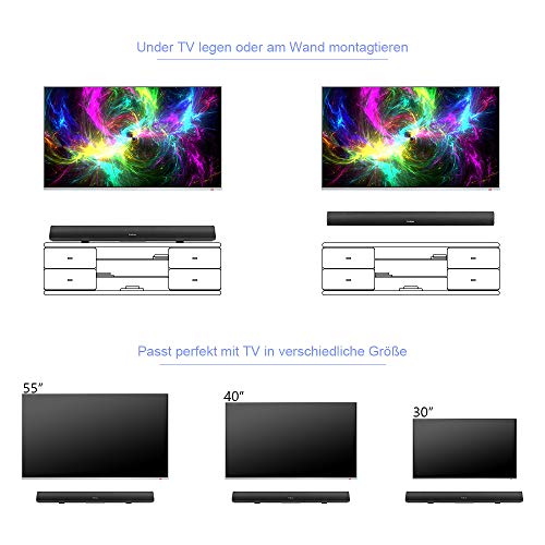 【40 Inch/80 Watt Soundbar per TV】 La soundbar è dotata di un sub-woofer incorporato e ha un'uscita impressionante di 80 W per fornire un suono surround cinematografico di qualità.