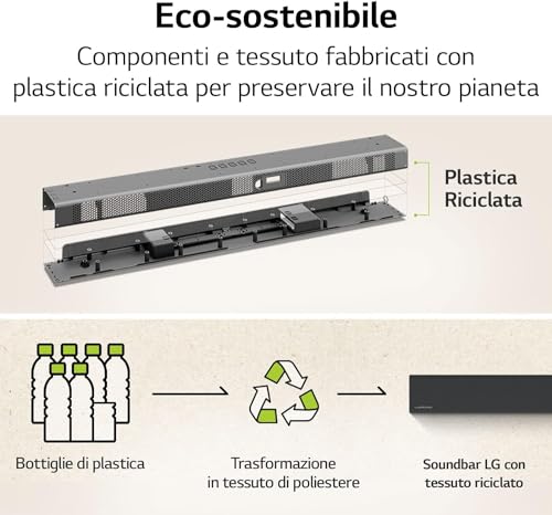 CONTROLLO INTUITIVO: Sfrutta le funzioni sviluppate per garantire un livello di compatibilità eccezionale: puoi controllare la potenza, il volume e anche le modalità audio della soundbar usando solo il telecomando TV LG