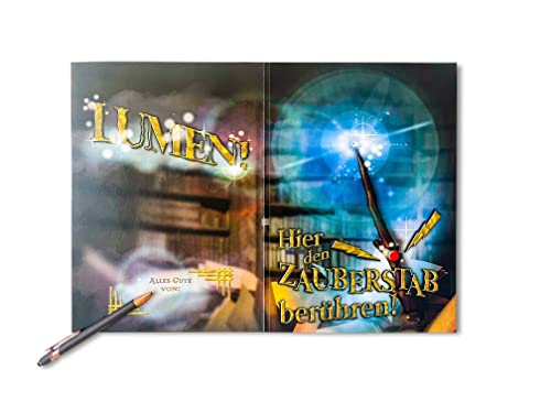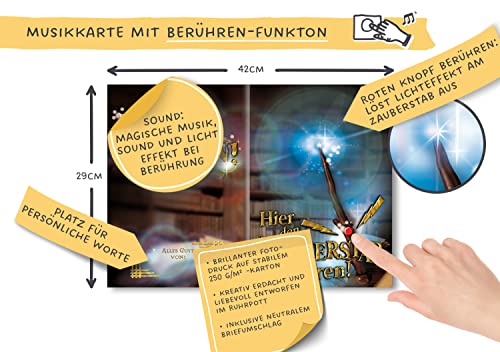 Unico e interattivo. Dopo l'apertura della scheda si sente una melodia misteriosa. Se si utilizza la bacchetta magica, questa inizia a brillare in alto