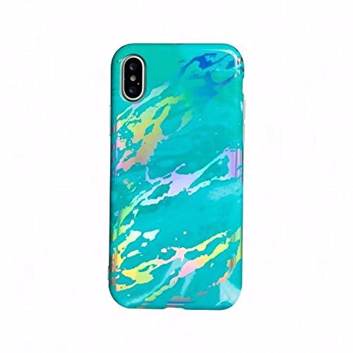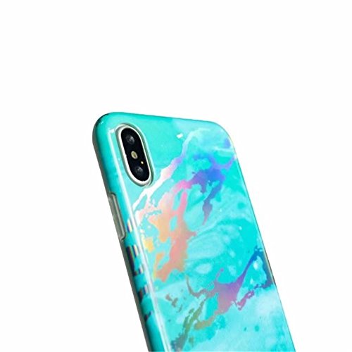 Soundmae iPhone 7 Case, iPhone 8 Case, Laser Bling Personalized Marble Design [Glossy Soft Touch Feeling Case] Shiny Color Changed Sparkling Cover for iPhone 7/8 4.7", Green&Blue