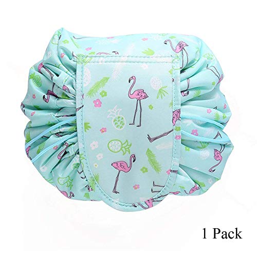 Soundmae Makeup Bag Large Capacity Drawstring Portable Travel Small Cosmetic Bag Makeup Pouch Toiletry Bags Zipper Compartment Makeup Storage Organizer Women Girls, Flamingo, 1 Pack