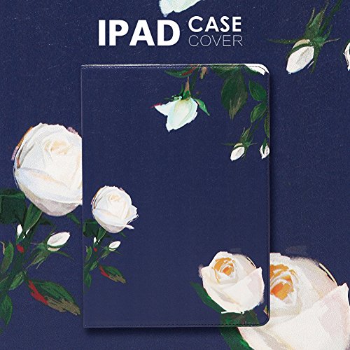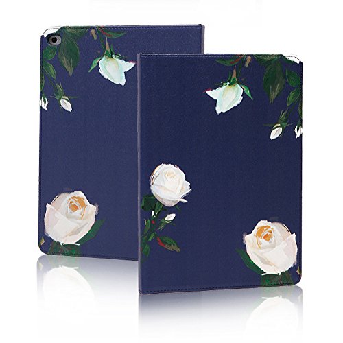 Soundmae iPad Air 2 Smart Case with Stand, Romance Rose Design Folio Case, Auto Wake/Sleep Cover with Multi Viewing Angles Silk Print Series for iPad Air 2 2014 Release (iPad 6), Navy