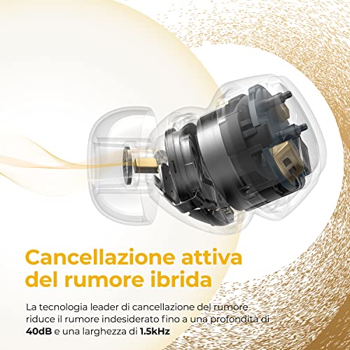 [Cancellazione attiva del rumore ibrida da 40 dB] - Conteneva due microfoni con cancellazione del rumore, uno feedforward e uno feedbackward, per cercare i rumori ambientali e poi cancellarli. Gli auricolari Mini Pro HS ANC possono sopprimere efficacemente il rumore indesiderato fino a 40 dB di profondità e 1,5 kHz di larghezza. Crea uno spazio privato per farti godere tranquillamente del suono ad alta fedeltà.