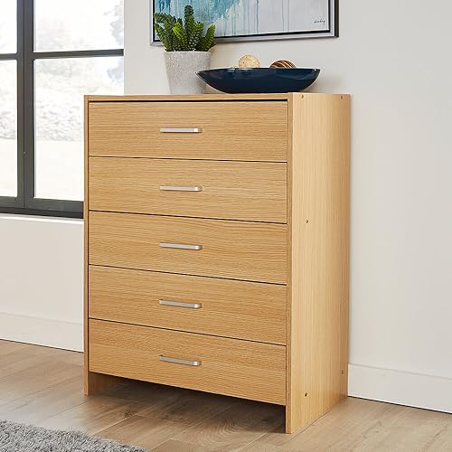 Home Source cassettiera Quercia mobili per Camera da Letto 5 cassetti Argento Manici in Metallo