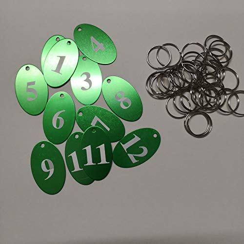 Sourcemall, Targhette numerate in lega di alluminio con portachiavi 1-100 Green
