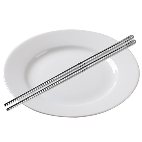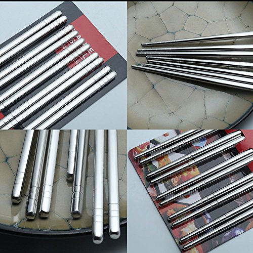 Qualità autentica: 10 paia (20 bacchette) in 100% acciaio inox 18/8 (chiamato anche 304) che non arrugginisce né si rompe, molto forte e robusto.