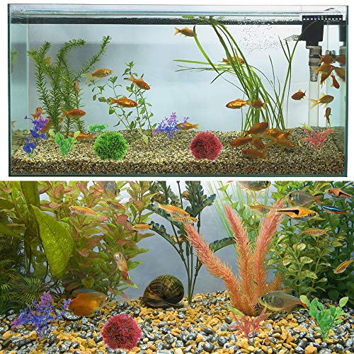 Dimensioni: le piante artificiali dell'acquario sono alte circa da 3 a 5 pollici. Le finte palline di muschio marimo hanno un diametro di 8,9 cm.