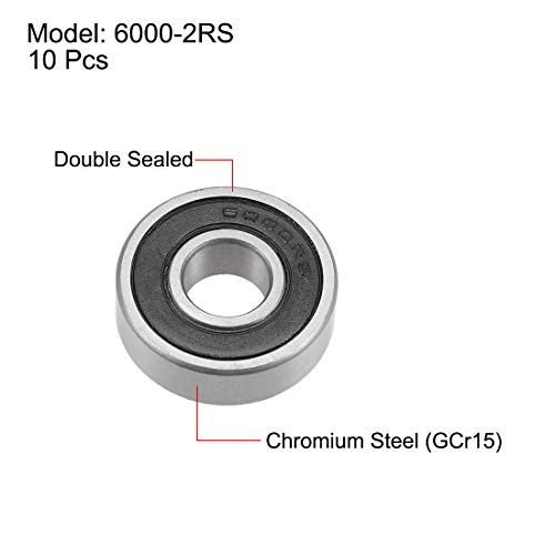 Sourcing map 6000-2RS Cuscinetti a Sfere Profondi Z2 10mm x 26mm x 8mm Doppio Sigillato Acciaio Cromato 10pcs