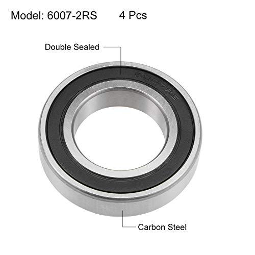 Sourcing map 6007-2RS Profonda Scanalatura Sfera Cuscinetti Z2 35mm x 62mm x 14mm Doppio Schermato Carbone Acciaio 4pz