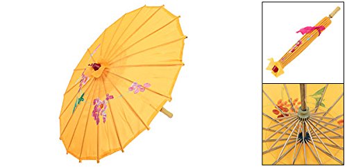 Sourcing map a15033000ux0325 Mini Ombrello Parasole, Stecche in plastica e Legno, Copertura a Stampa Fiore e Foglia - Giallo