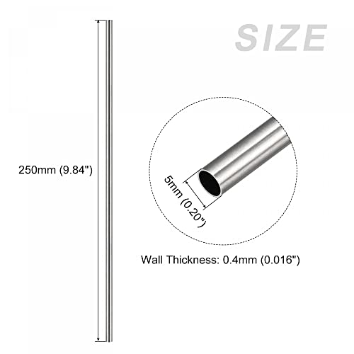 Sourcing map Tubo in acciaio inossidabile 304 (5 mm OD x 0,4 mm parete T x 250 mm L) 4 pezzi, tubi dritti - per arredamento casa, macchinari
