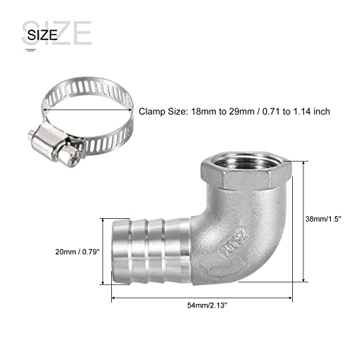Sourcing map 304 Tubo in Acciaio Inox Raccordo Gomito 20mm x 1/2NPT Femmina Filettatura Ad Angolo Retto Connettore Tubo con Fascetta 1 Set